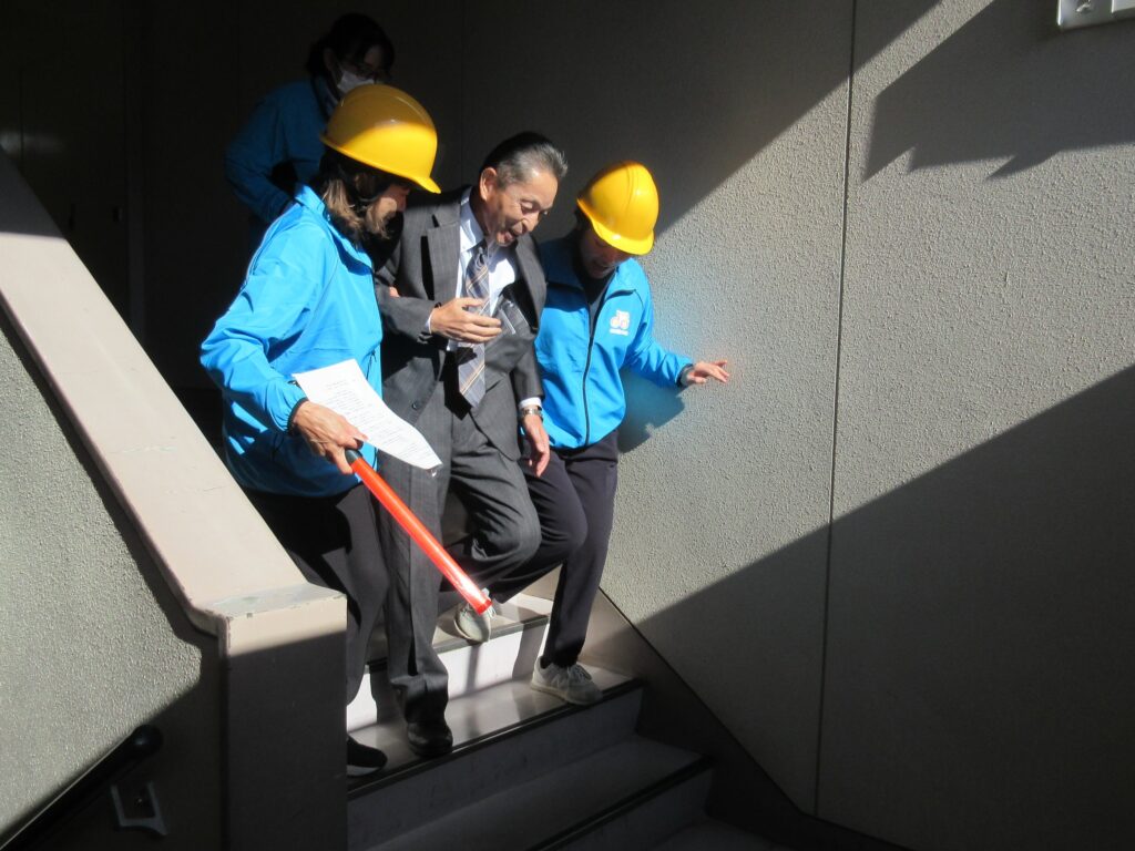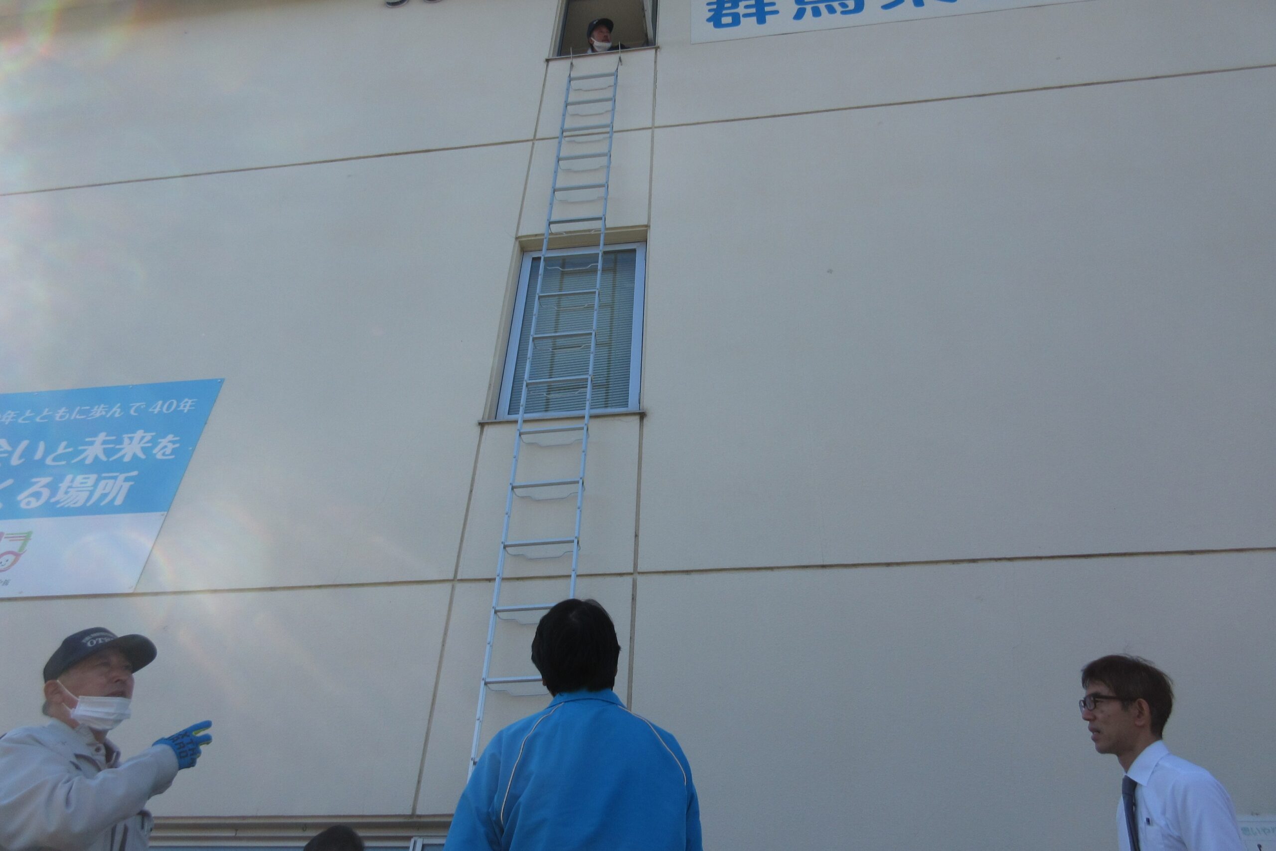 最後に、新館3階の廊下にある避難はしごの試行を行いました。