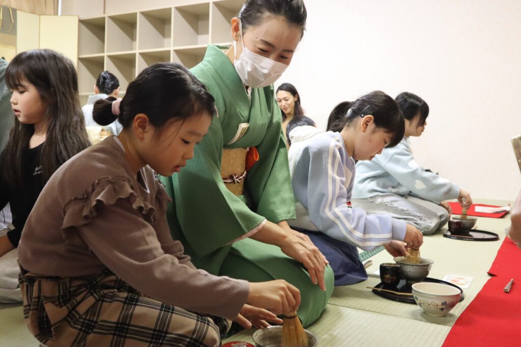 最後にお茶の点て方を体験し、親子でお互いに点て合いました。
